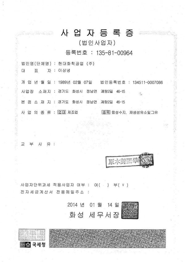 사업자등록증 페이지 정보 작성자 최고관리자 작성일17-10-17 16:53 조회3,575회 댓글0건 관련링크 이전글 목록 본문 사업자등록증 댓글목록 등록된 댓글이 없습니다. 이전글 목록